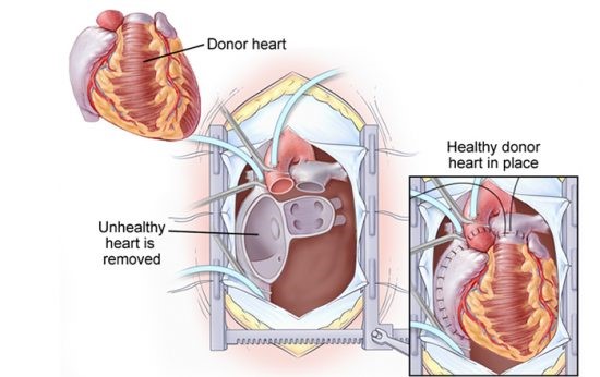 Çeşitli hastalıklar sonucu kalp kasının geri dönüşümsüz bir şekilde tahrip olduğu ve kalbin pompa fonksiyonunun vücudun ihtiyaçlarını karşılayamaması sonucu hayati risklerin ve yaşamsal sorunun ortaya çıktığı durumda (yaşam beklentisi 1 yıl ve altında ise), yapılan incelemelerde tıbbi şartlar uygun ise, hasta kalbin, sağlıklı bir donör kalbi ile değiştirilmesi ameliyatıdır.